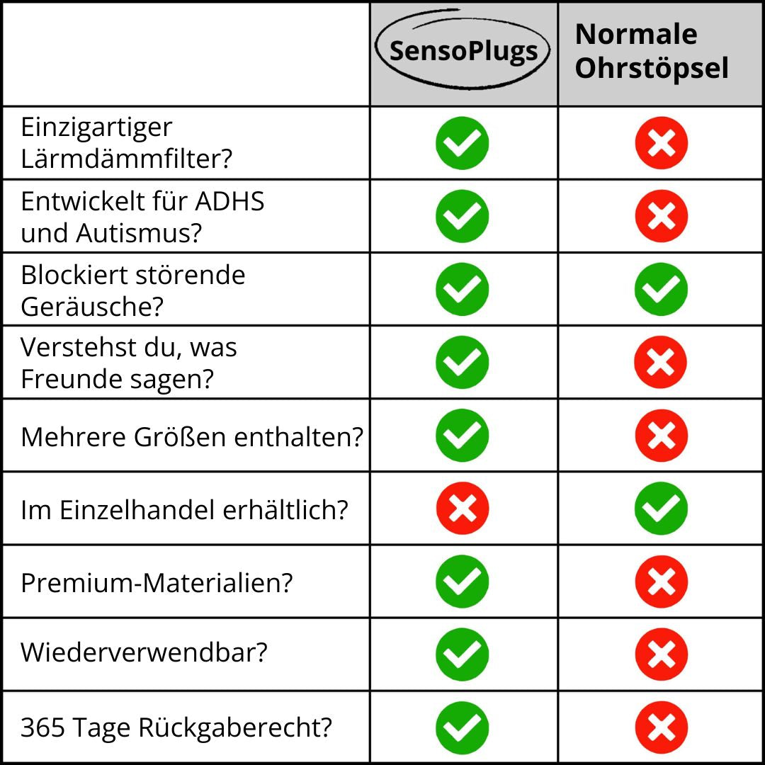 Ein weiterer großer Unterschied ist, dass SensoPlugs speziell für Kinder und Erwachsene mit ADHS und Autismus entwickelt wurden.