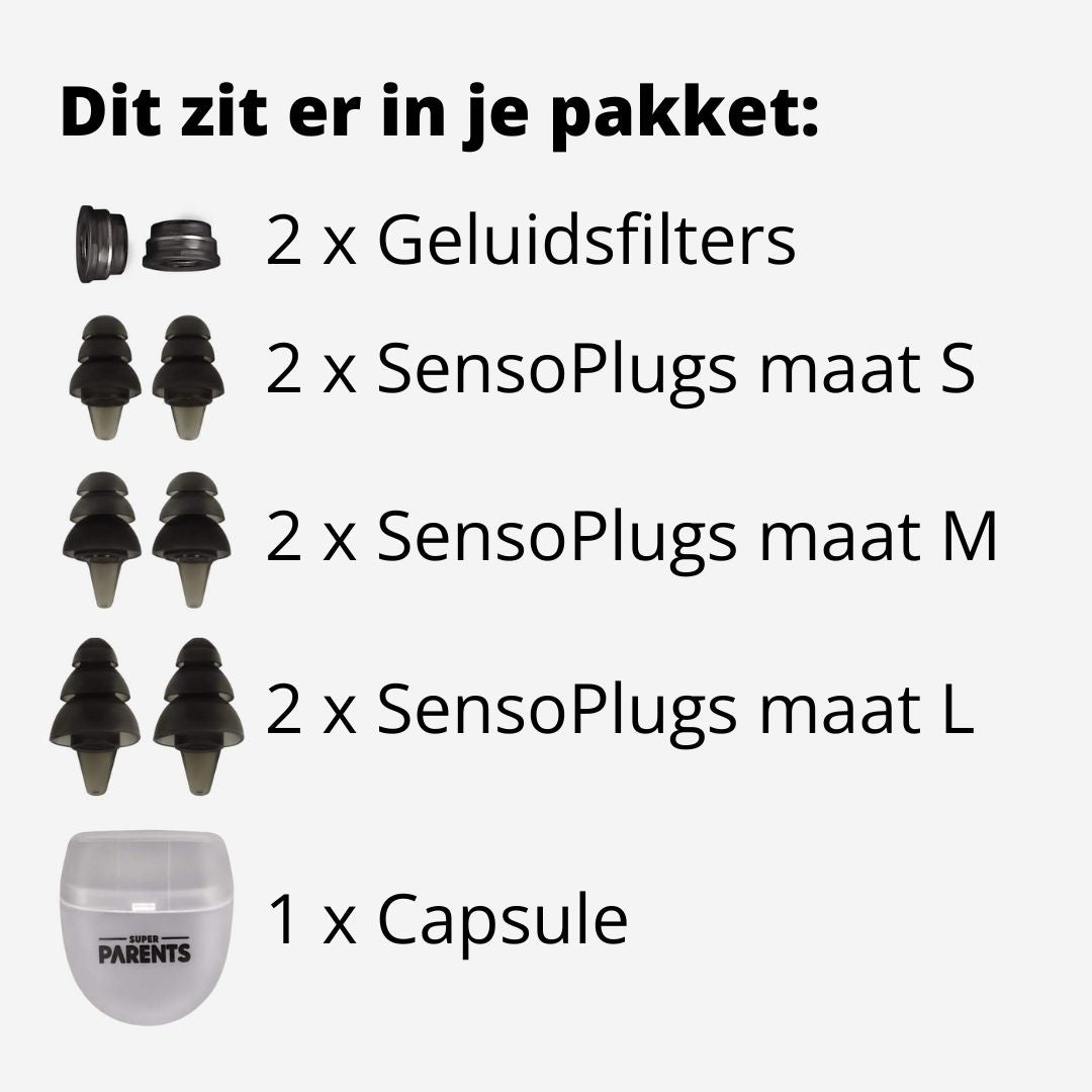 - Eén paar geluidsfilters om in je SensoPlugs te plaatsen.