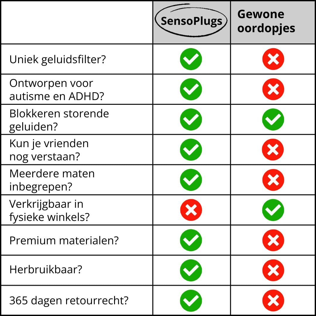 Een ander belangrijk verschil is dat SensoPlugs speciaal zijn ontworpen voor kinderen en volwassenen met bijvoorbeeld ADHD en autisme.